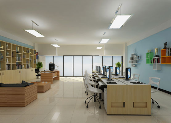 寫字樓設計中關于墻面的造型設計,應該根據實際每面墻的特點來做,以虛為主虛中有實,或以實為主,實中有虛,應盡量防止虛實各半、平均分布的設計方法。把門、窗納入墻面的豎向分割或橫向分割的體系中去,可以削弱其孤立感,建立一種秩序。